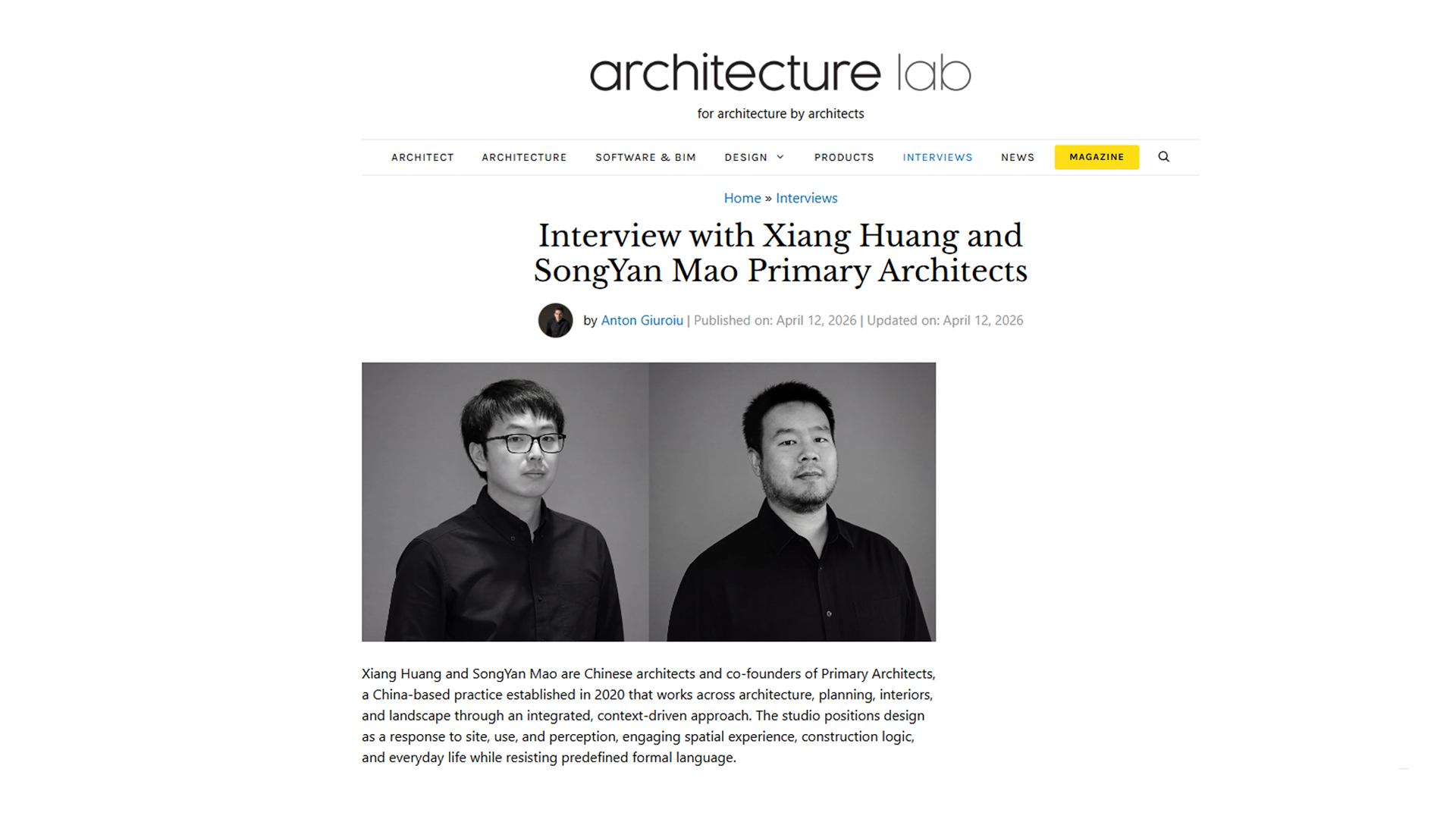 2026.04. architecture lab 原初建筑专访