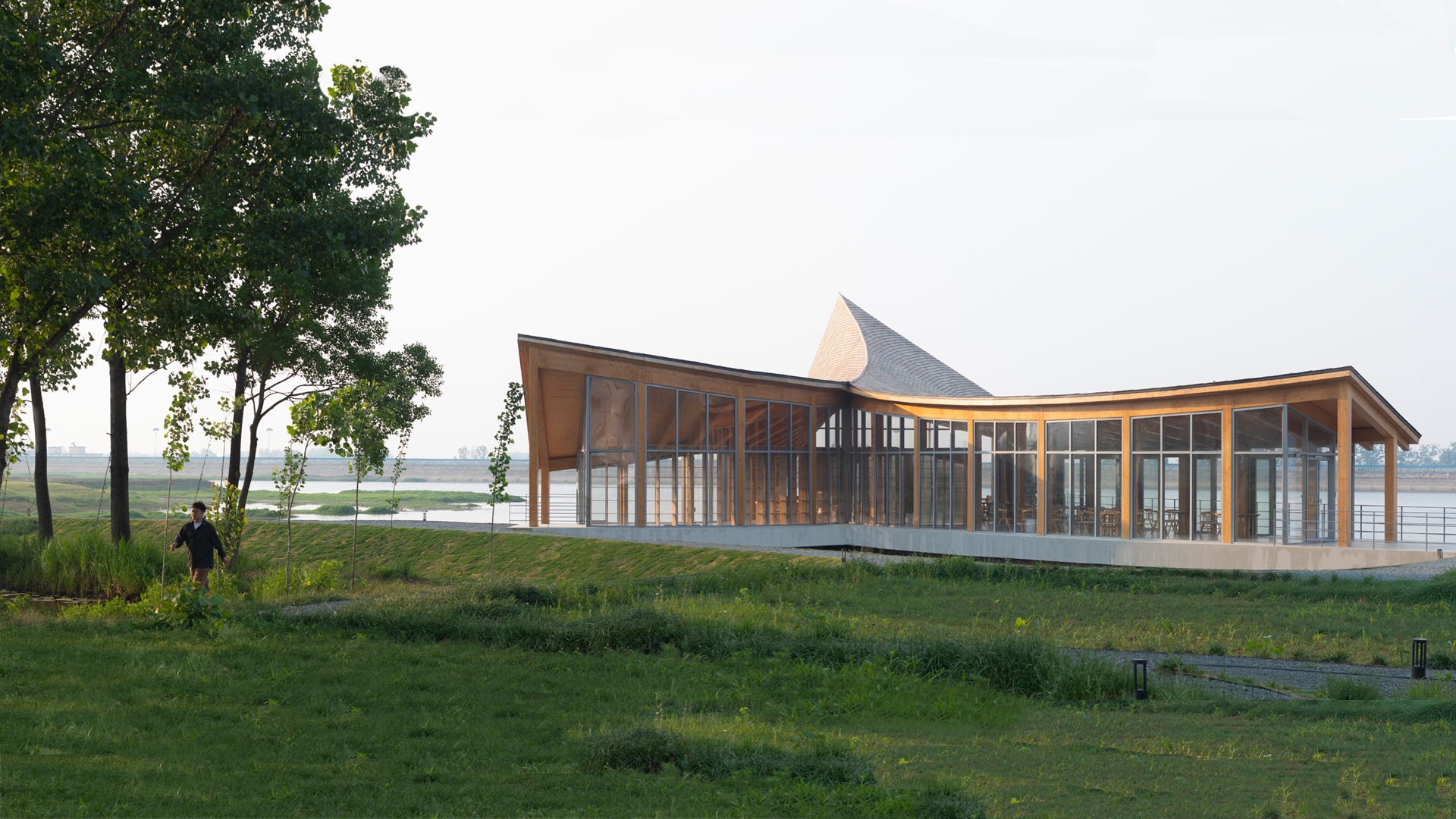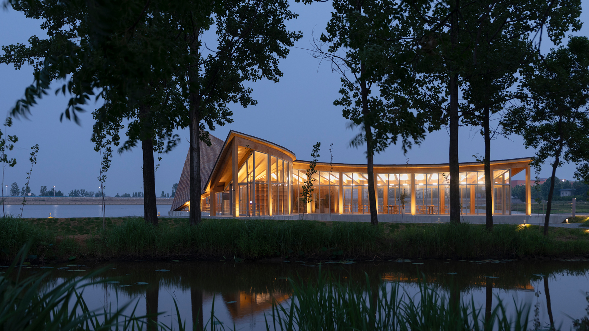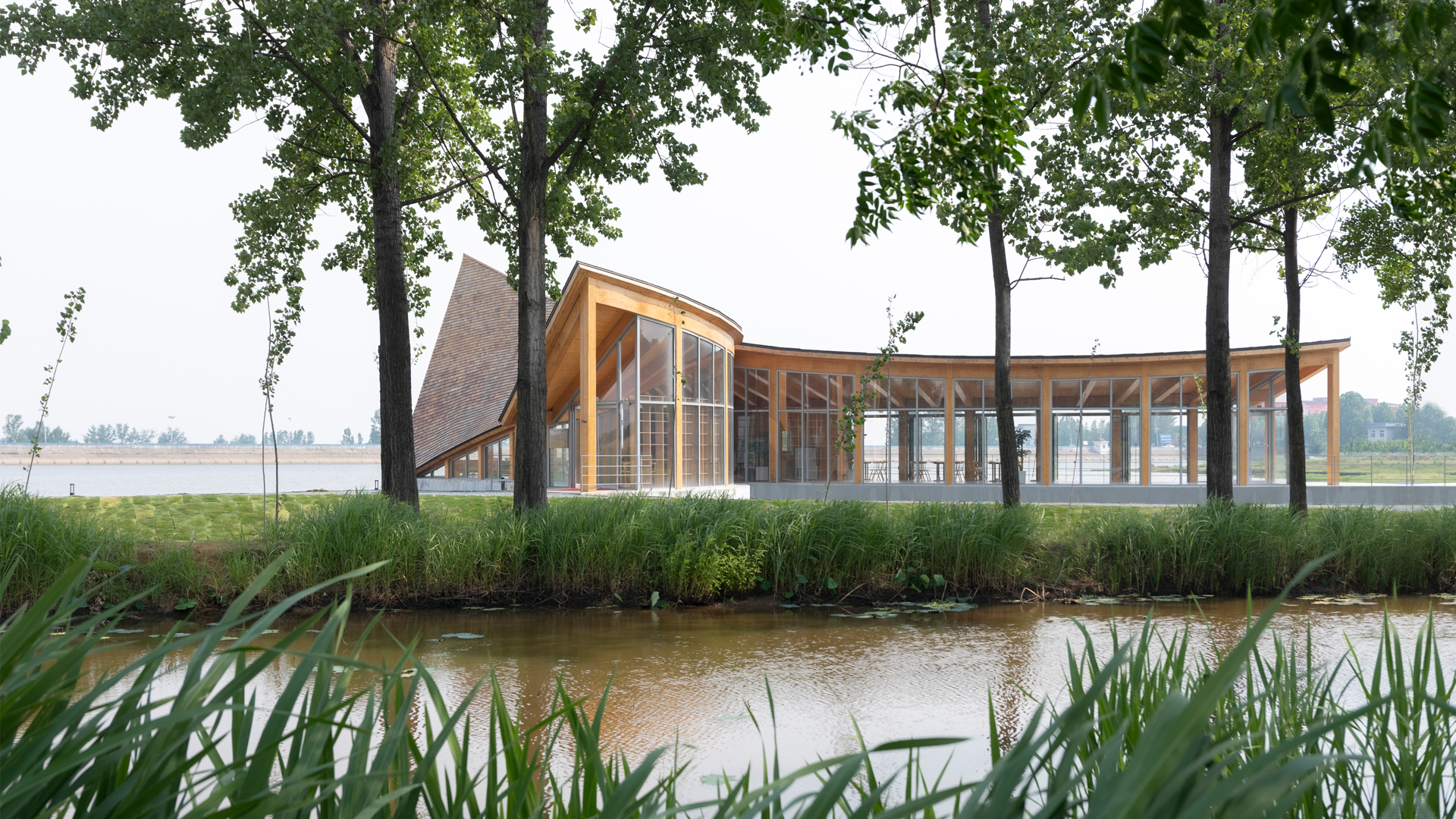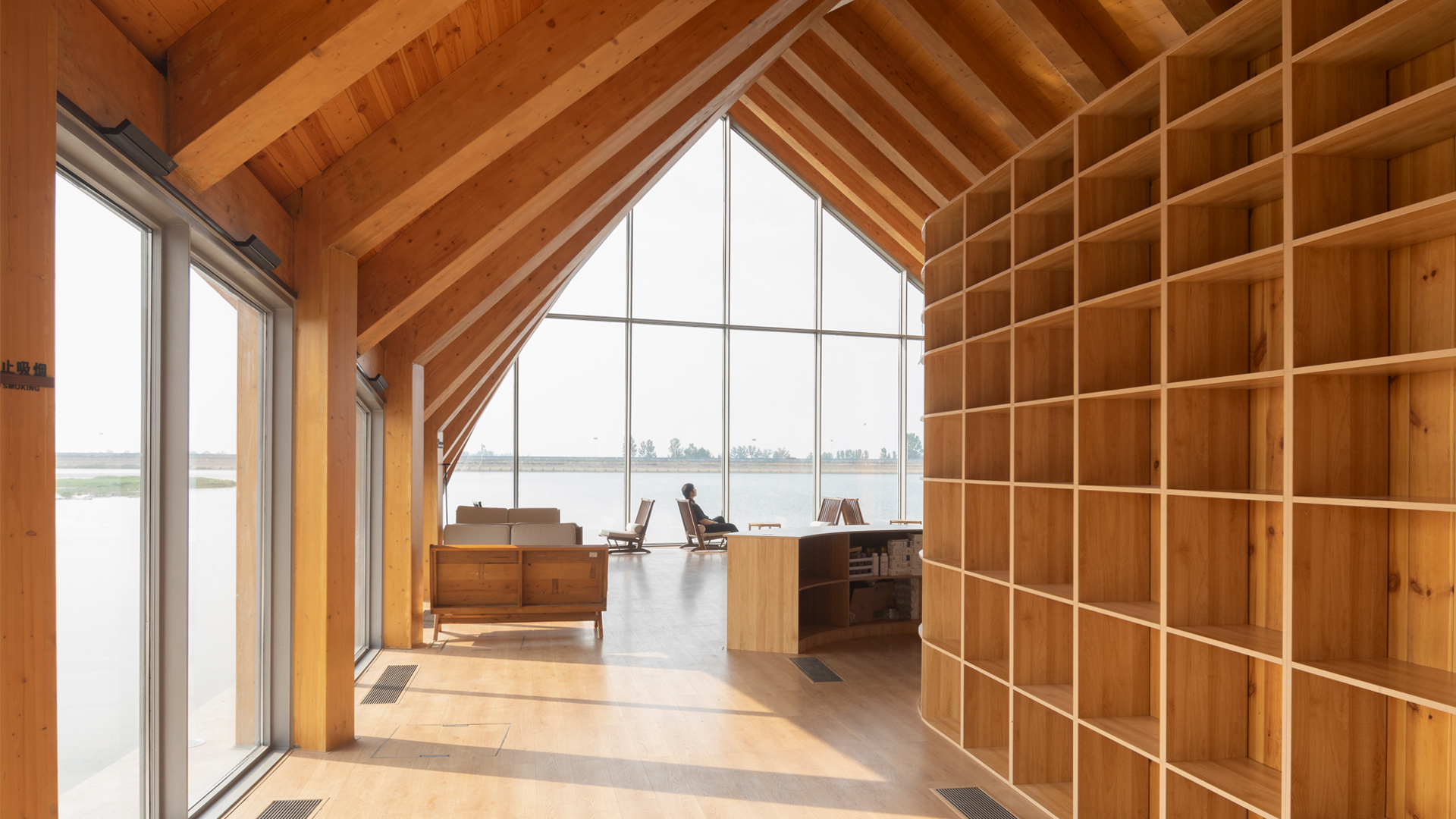 项目所在水库承担着周边农田灌溉功能,水位随季节变化。考虑到水库周边丰富的水鸟栖息环境,设计采用环境敏感型生成逻辑:通过数字化地形分析,使建筑既融入原生堤埂肌理中,又通过抬升基座适应水位波动。原生植物系统被保留为生态缓冲带,形成建筑与水域的有机过渡。